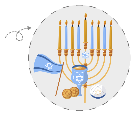 이스라엘은 성탄절 즈음에 성탄절이 아닌 하누카(수전절)라는 명절을 지켜요. 하누카는 그리스의 안티오쿠스 4세가 예루살렘 성전에 우상을 세우고 돼지고기를 제물로 바치는 등 하나님의 명령에 반대되는 행동을 한 것에 대해 유대인들이 힘을 모아 싸워서 그리스 사람들을 몰아내고 성전을 깨끗하게 만들어 하나님께 드린 것을 기념하는 날이에요.