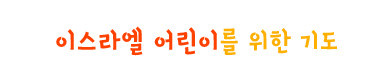 이스라엘의 어린이들을 사랑하시는 예수님, 아직도 예수를 부인하는 이스라엘의 모든 사람들이 예수님을 믿게 해 주세요. 유대 사회에서 온갖 불이익을 받으면서도 예수님을 믿는 메시아닉 성도들을 위로해 주시고, 믿음으로 승리할 수 있게 힘을 주세요.
