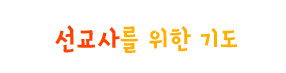 모든 민족에게 복음을 전하라고 말씀하신 예수님, 선교사들이 현지의 언어와 문화를 잘 이해하고, 오랫동안 선교지에 살면서 복음을 전할 수 있게 하시고 또한 가족들을 안전하게 지켜 주세요. 자녀들이 작은 예수로 살아가며 복음을 증거하고 주님을 기뻐하며 승리할 수 있게 힘을 주세요.