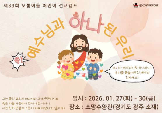 2026년 1월 27-30일에 진행되는 모퉁이돌 어린이 선교캠프에 초청합니다!