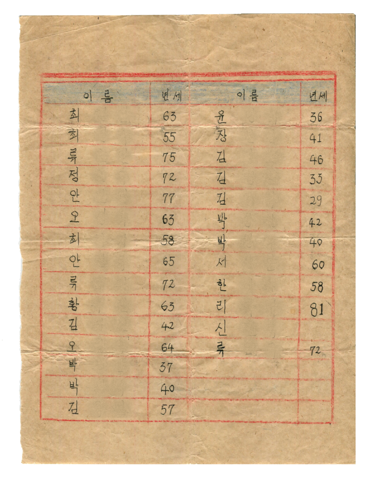 사역 초기, 성경을 가져간 조선족 사역자에게 죽더라도 믿음을 지킬 수 있도록 기도해 달라는 부탁과 함께 건네진 북한 지하교회 성도들의 명단이다.