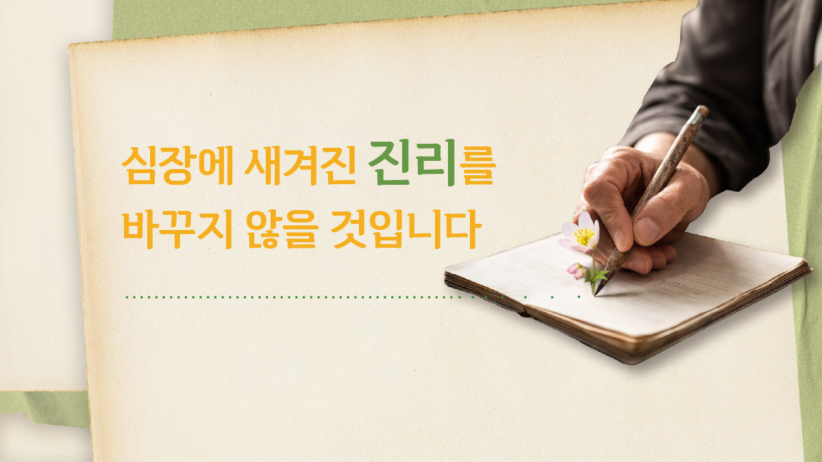 그 어떤 광풍이 불어와도 진리를 바꾸지 않을 것이요, 또 진리는 반드시 승리할 것입니다.