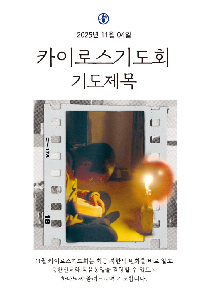 11월 카이로스기도회는 최근 북한의 변화를 바로 알고 북한선교와 복음통일을 감당할 수 있도록 하나님께 올려드리며 기도합니다.